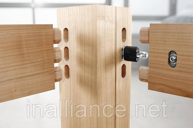 Система кутових та панельних з'єднувачів для пазово-дюбельного фрезера DOMINO XL DF 700 забезпечує надійні, розбірні з'єднання починаючи з товщини матеріалу 30 мм.