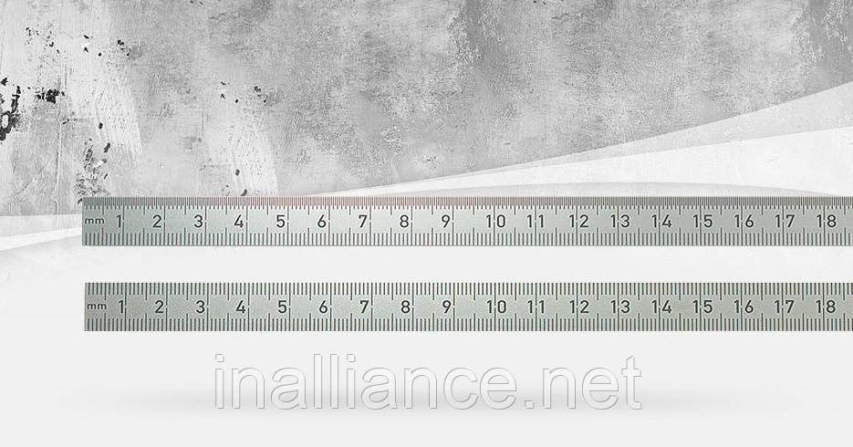 Лінійка виготовлена зі стійкої до корозії твердої холоднокатаної пружинної нержавіючої сталі.